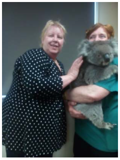 Following from our annual charity night where we raised $250 for the Koala & Wildlife Hospital, Anne visited the centre to pass on these proceeds and by chance got to be involved in a tour of the facility and got to pat 'Honey' the koala as well (see picture below).